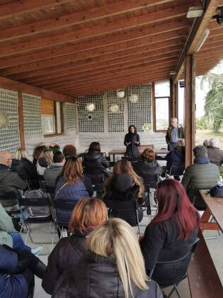 Il lavoro pomeridiano si è concentrato nel liberare il giardino da rami e legna e le piante dall’edera, mentre nei campi i partecipanti hanno fatto la pacciamatura del terreno dove crescono giovanissimi alberi per impedire la crescita degli infestanti e ridurre l’uso idrico.