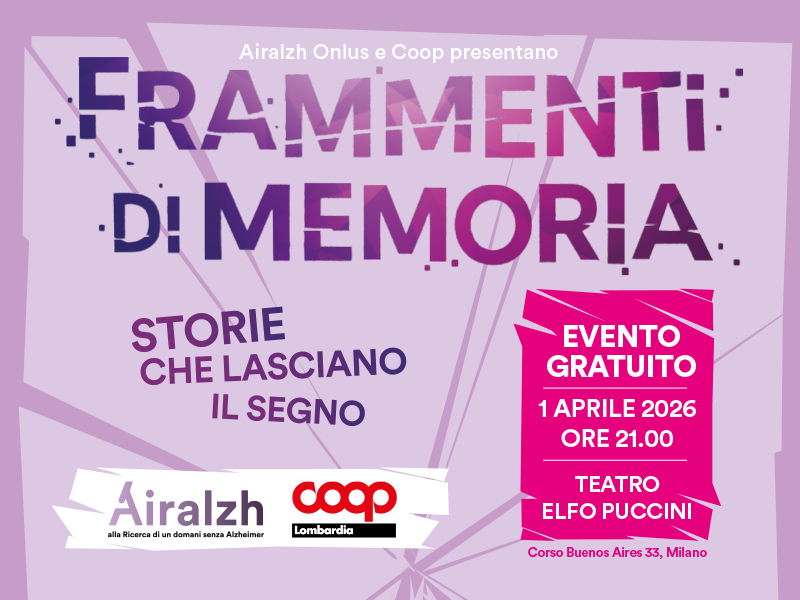 Serata speciale dedicata all’Alzheimer, al Teatro Elfo Puccini.Mercoledì 1 aprile alle ore 21, il Teatro Elfo Puccini di Milano ospita “Frammenti di Memoria – Storie che lasciano il segno”, un evento gratuito promosso da Airalzh Onlus con il contributo organizzativo di Coop Lombardia.